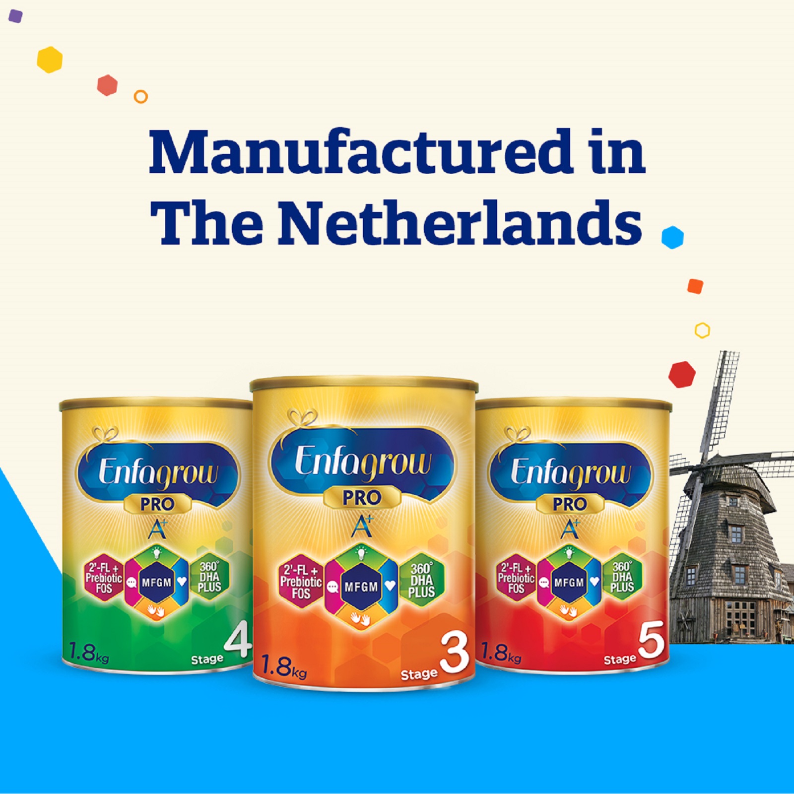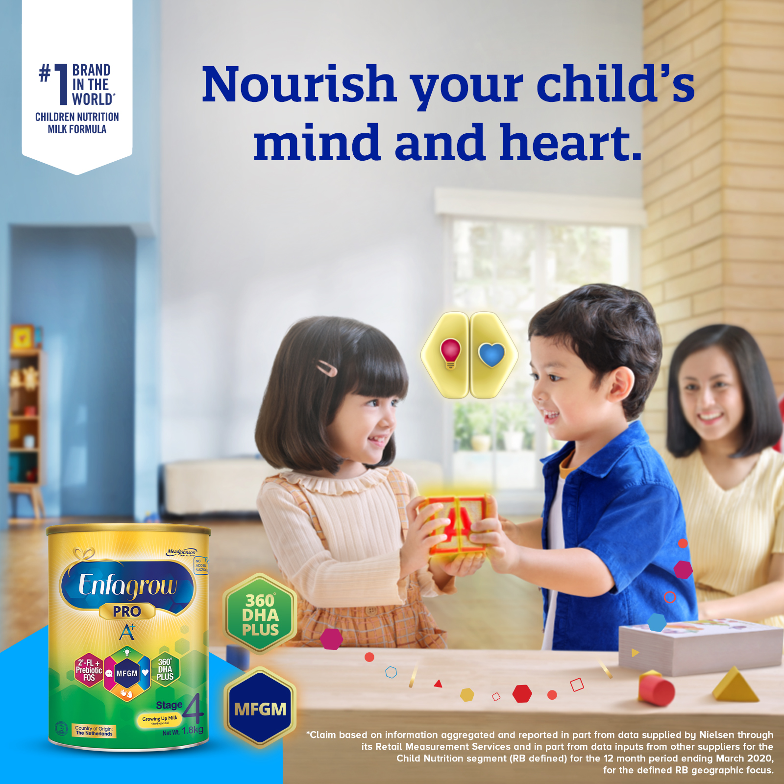 With over 100 years of experience in pediatric nutrition, Mead Johnson Nutrition has scientifically formulated Enfagrow Pro A+ Stage 4 with a unique blend of nutrients that are important for overall mental and physical development.
