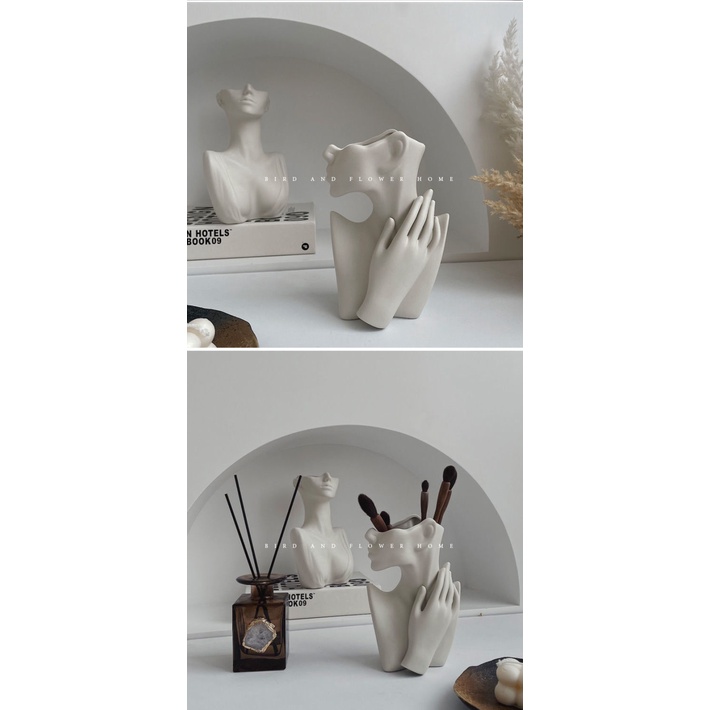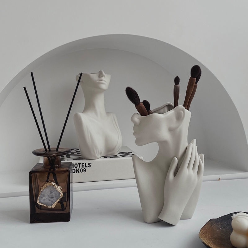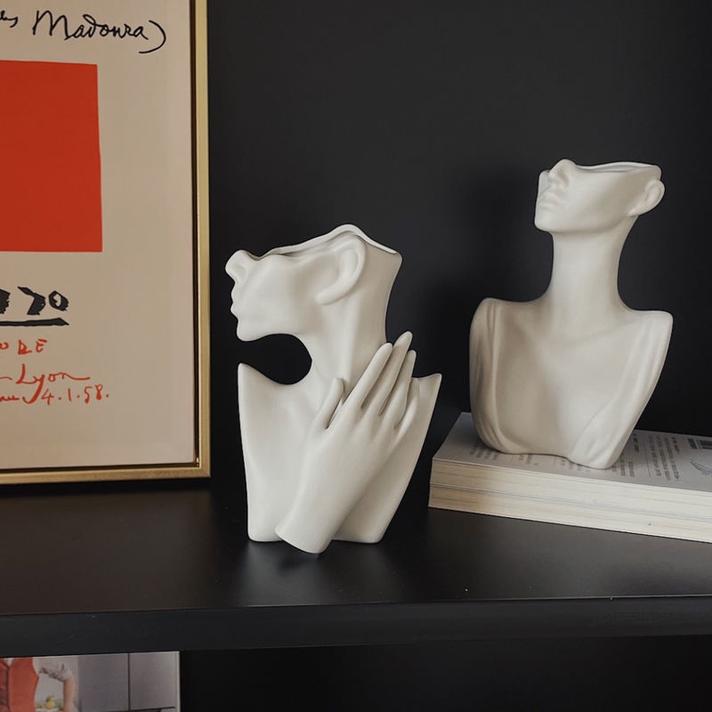 INS Style Human Body Ceramic Vase Decoration Living Room Fake Flower Artificial Flower Decoration Top Grade French Decorations/Nordic Bust Figure Female Body Art Sculpture Flower Pot